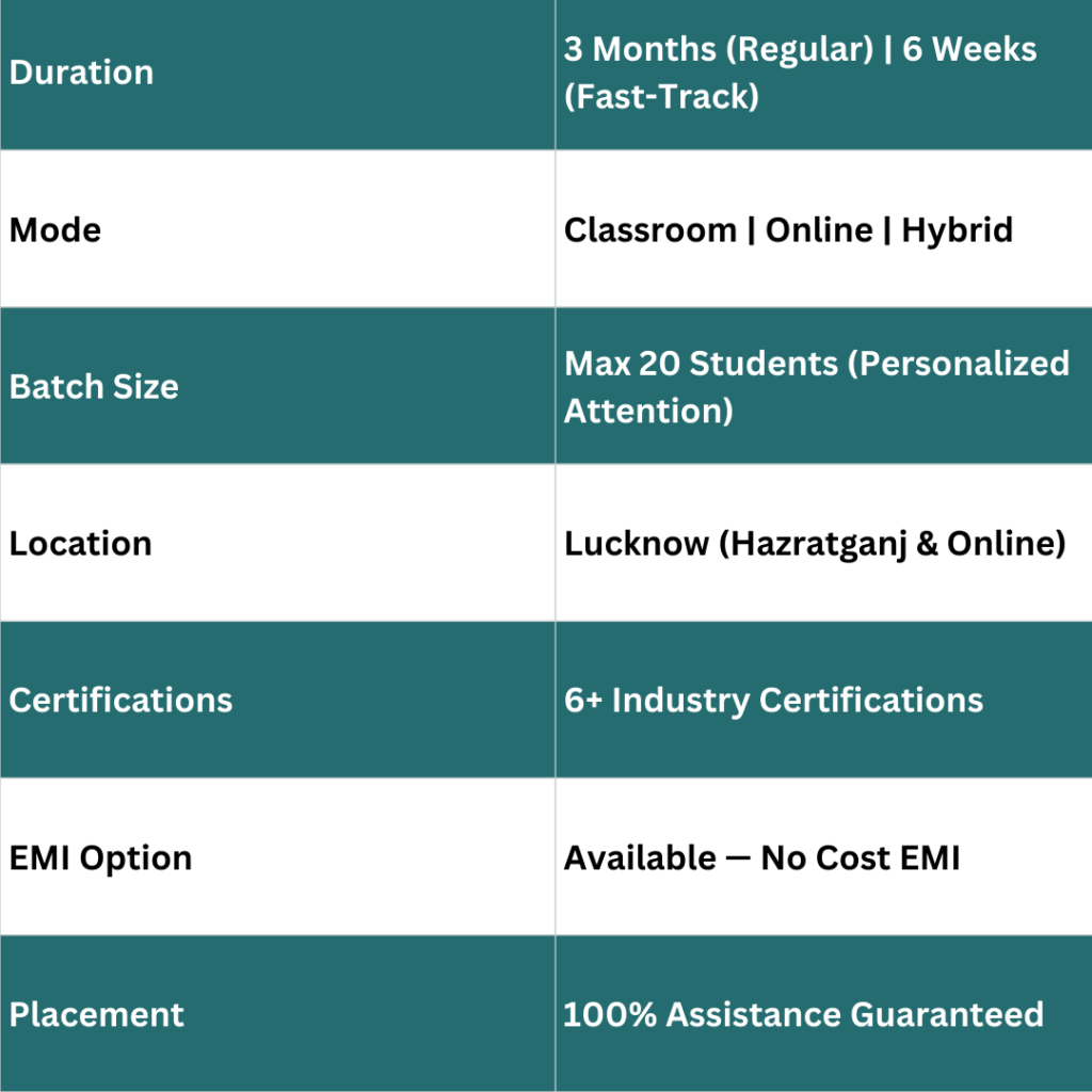 Consistently rated among the Top 5 Digital Marketing Institutes in Lucknow by students and industry bodies.